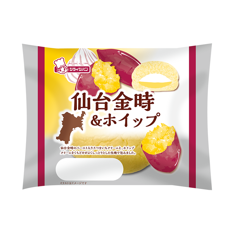 仙台金時のペースト入りさつまいもクリームと、ホイップクリームをくちどけがよくしっとりとした生地で包みました。