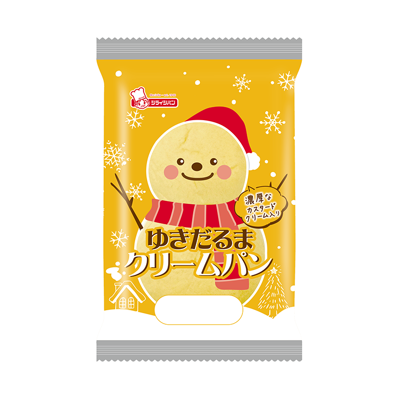濃厚なカスタードクリームが入った 雪だるまの形をイメージしたパンです。