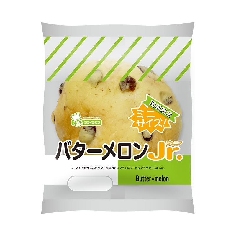 レーズンを練り込んだバター風味のメロンパンにマーガリンをサンドした毎月12日〈パンの日〉限定で販売している「バターメロン」のジュニアサイズを、2月末までの期間限定で販売。