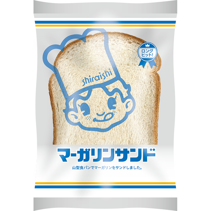 やわらかい山型食パンにしゃりしゃりとしたシュガーマーガリンがやみつきになる、長年愛されている菓子パンです。