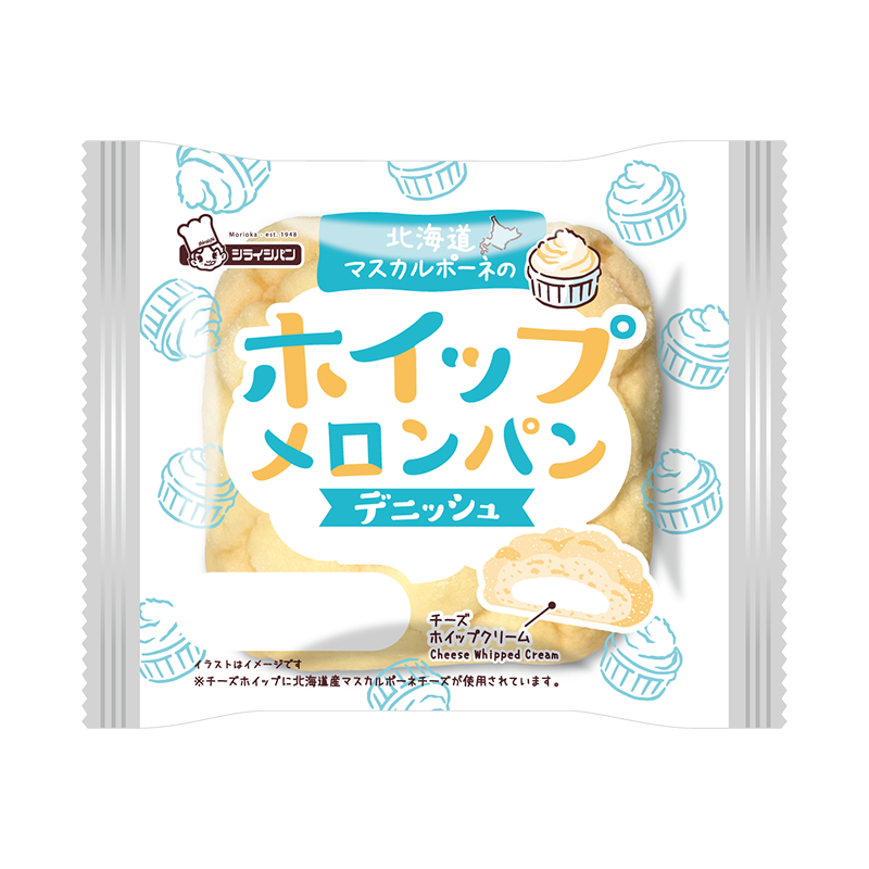 北海道産マスカルポーネチーズ入りの爽やかなチーズホイップが入ったデニッシュメロンパンです。