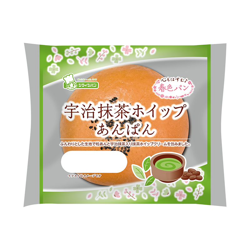 ふんわりとした生地で、粒あんと宇治抹茶入り抹茶ホイップを包みました。